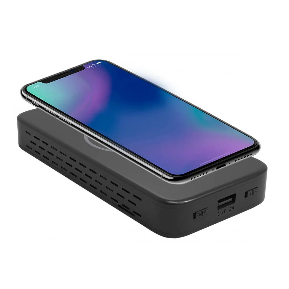 - Carga inalámbrica: también podrás realizar la carga inalámbrica si tu teléfono soporta este tipo de carga. Tan sólo deja el teléfono encima del power bank y se cargará su batería.